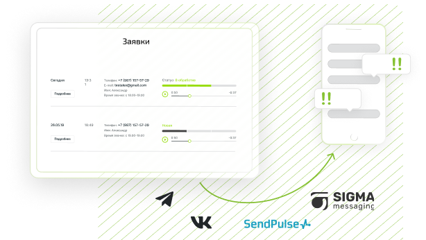 Настройте отправку данных в мессенджеры, соцсети, сервисы для рассылок SMS и писем по email, чтобы получать уведомления о заявках в реальном времени