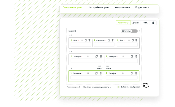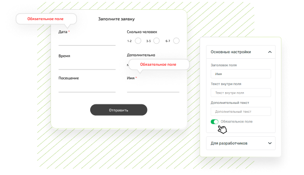Меняйте заголовки полей, комментарии к ним, плейсхолдеры и маски заполнения. Каждое поле можно задать обязательным