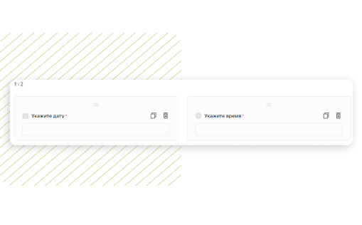 Добавляйте поля, исходя из целей вашей формы, которые помогут собрать более точную информацию о желаниях клиента. У нас в примере это размещенные в одной строке поля «Дата» и «Время», которые вносят детали в заявку клиента