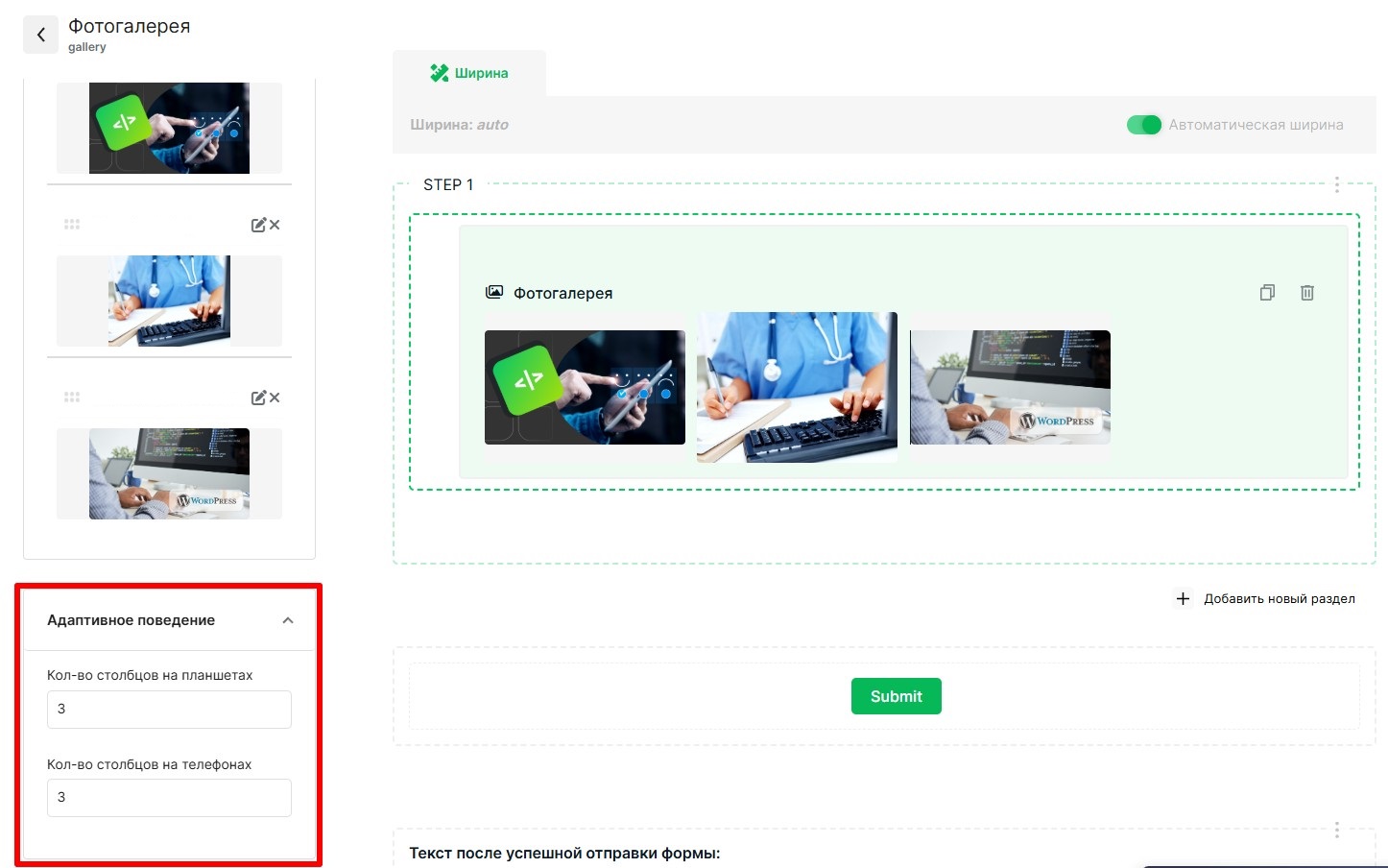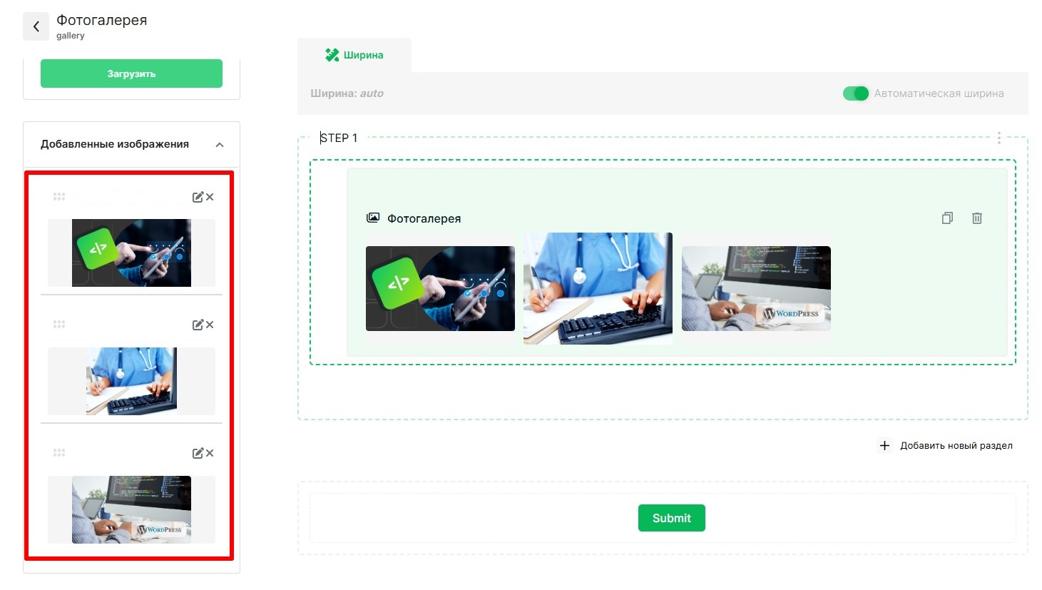 Фотогалерея в форме делает взаимодействие с пользователями эффективнее. Особенно, если включить отзывы клиентов или успешные кейсы. Визуальный контент проще воспринять и запомнить, чем текст, он создает эмоциональную связь и увеличивает доверие к бренду. С ним форма становится привлекательнее и динамичнее, а это положительно сказывается на конверсии. Наконец, качественные фото ускоряют процесс принятия решений, предоставляя нужную информацию сразу, без перехода на другие страницы.