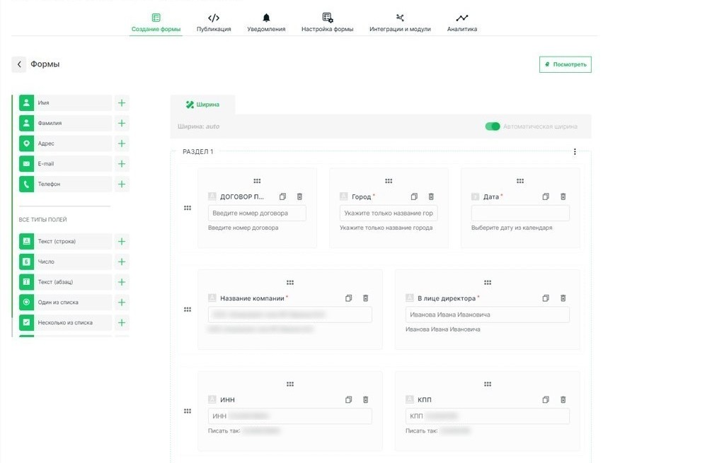 Автоматическое заполнение и генерация документов на основе данных форм