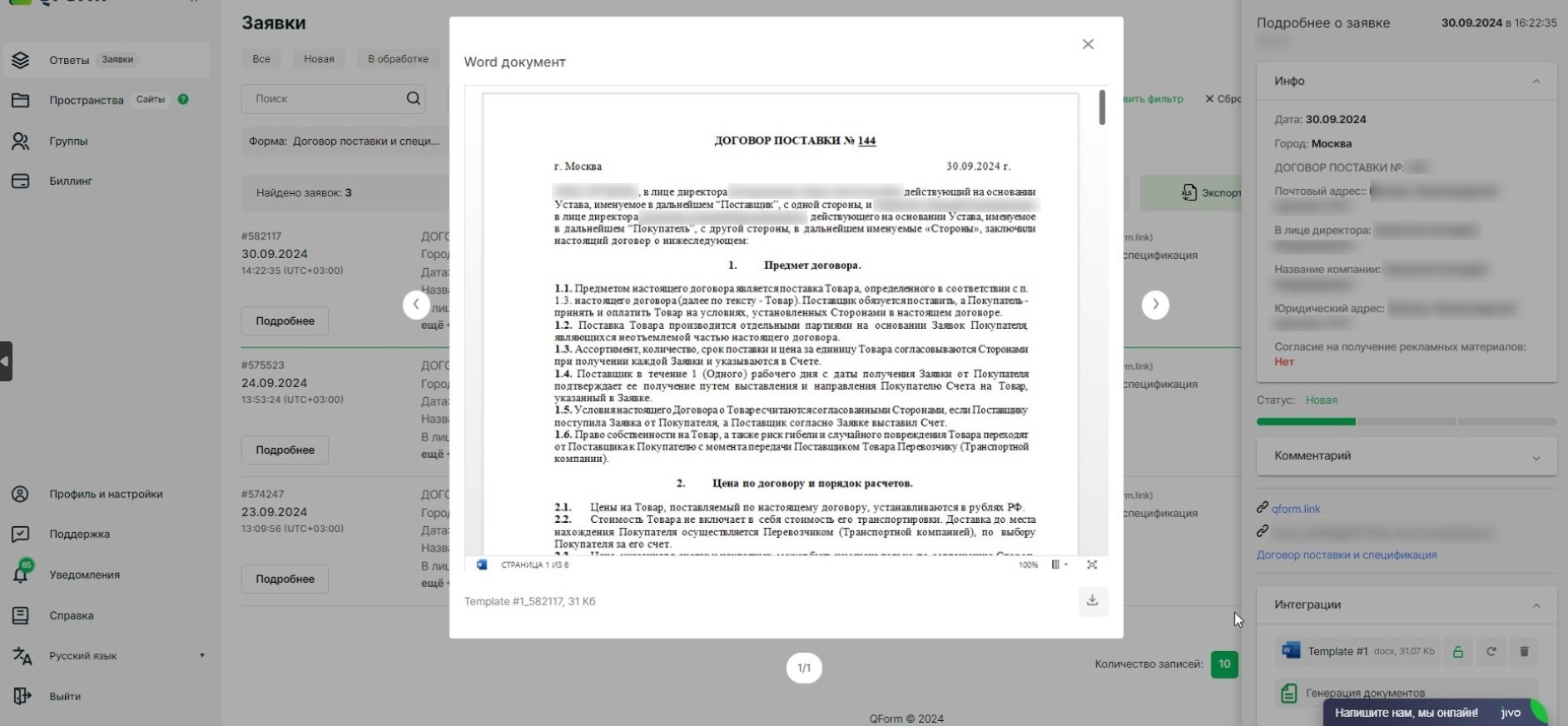 Отправьте форму для автоматической генерации документов