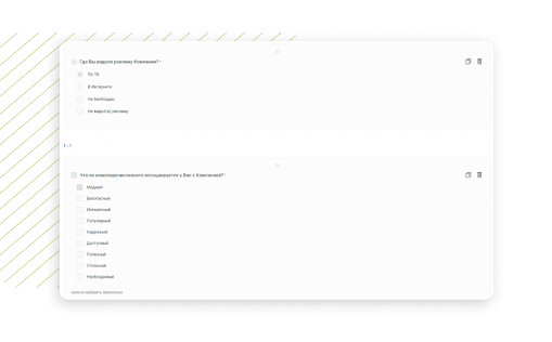 Добавляйте поля, исходя из целей опроса, которые помогут собрать более подробную информацию. У нас в примере это поля «Один из списка» и «Несколько из списка», которые вносят детали в ответ клиента