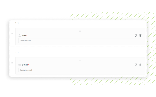 В режиме конструктора перетащите виджеты «Имя», E-mail. Сделайте их обязательными для заполнения
