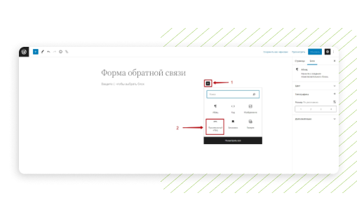 Чтобы разместить контактную форму на сайте Wordpress, перейдите в режим редактирования новой или существующей страницы