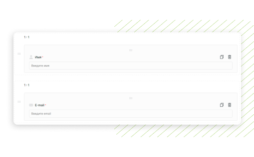 Для сбора контактов перетащите виджеты «Имя», «E-mail». Сделайте их обязательными для заполнения