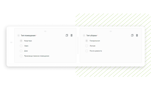 Перетащите поле «Один из списка» и в настройках укажите варианты. Добавляйте любые нужные поля на ваше усмотрение, например, тип оплаты