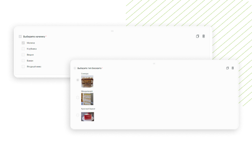 Прикрепляйте картинки в полях одиночного и множественного выбора. Демонстрируйте наглядно товар и его преимущества