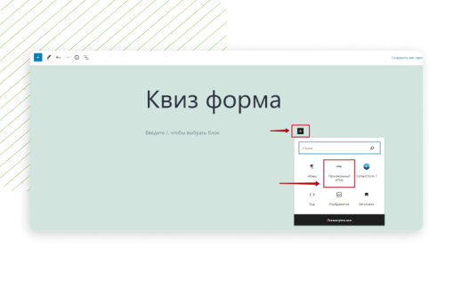 Нажмите на кнопку «+», чтобы добавить блок.
