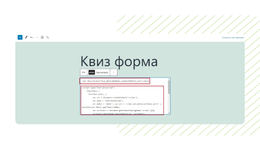 Разместите «Текстовый блок». Поле поддерживает теги HTML, используя которые можно добавлять элементы (заголовки, картинки, GIF), чтобы оформить стартовую и финишную страницы квиза
