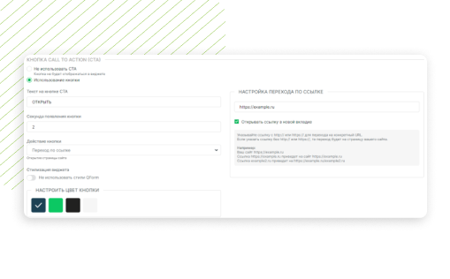 К любому видео можно добавить кнопку с целевым действием. Её появление можно привязать ко времени, а текст изменить в зависимости от контекста